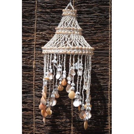 A handmade chandelier made from white and orange shells in a V type shape. Approximately 70cm in length.